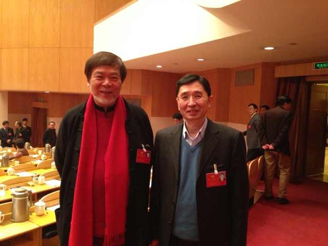 浪莎控股集團董事局主席翁榮金與花鳥大畫家何水法合影
