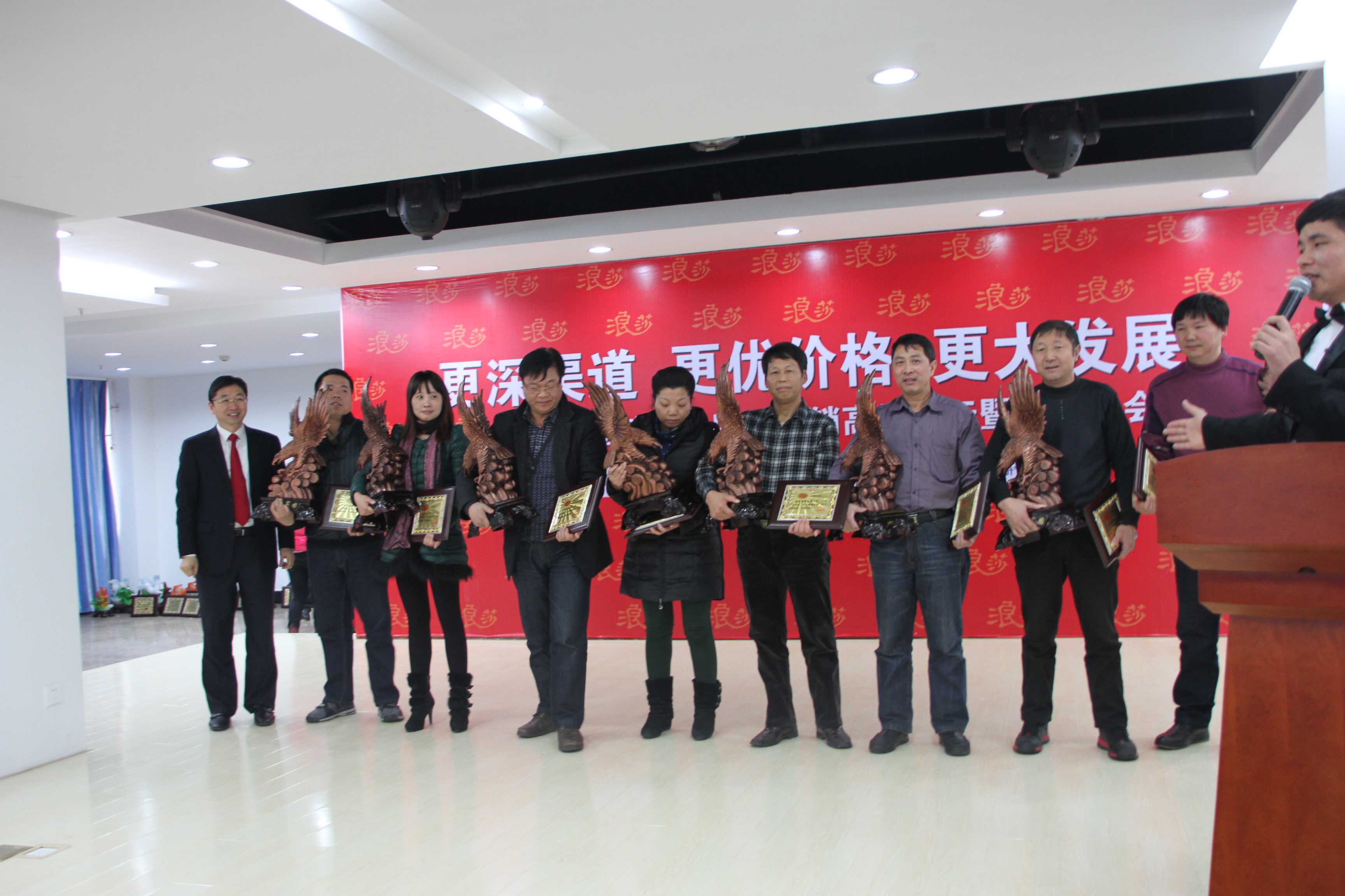 隨后的頒獎環節中,分別產生了新秀獎、營銷渠道創新獎,銷售狀元等十多個獎項,董事局領導為獲獎客戶頒獎。其中,新秀獎獲得者,一位江西的80后客戶感慨頗深,他大學畢業來義烏擺地攤創業,一直沒有出色業績,因為一次偶遇,得到了公司董事局總裁的指導,加入浪莎銷售隊伍,僅2年的時間開了4家專賣店,從一個農村小伙子變成了收入豐厚的老板。對此,他特別向支持和幫助他的浪莎董事局領導表示感謝,當他大聲喊出:“浪莎是我一生的事業,是我家人一生的事業”的時候,全場沸騰了!