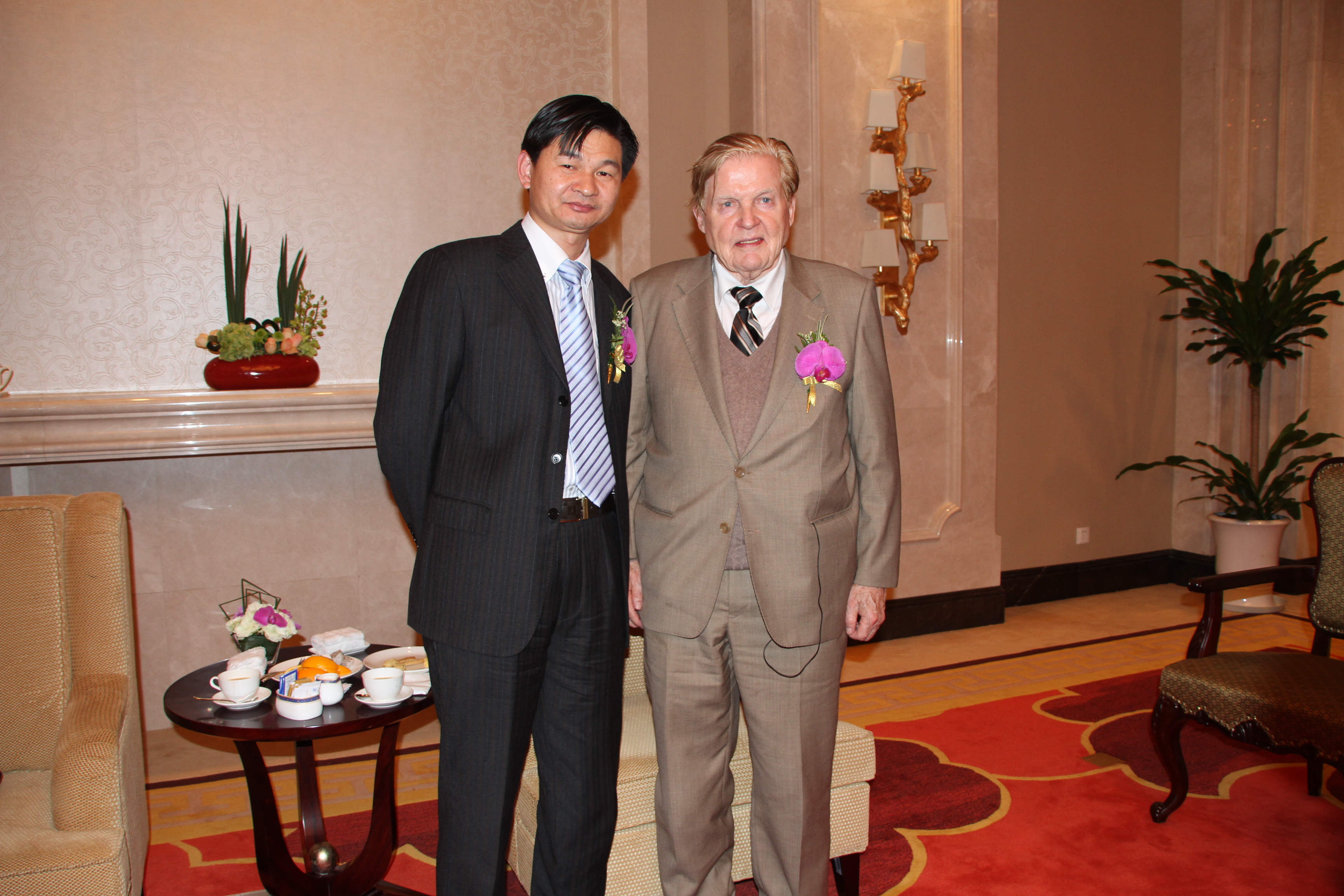 會后翁總裁與蒙代爾先生合影留念,蒙代爾先生親筆題詞,為浪莎送去美好的祝愿。