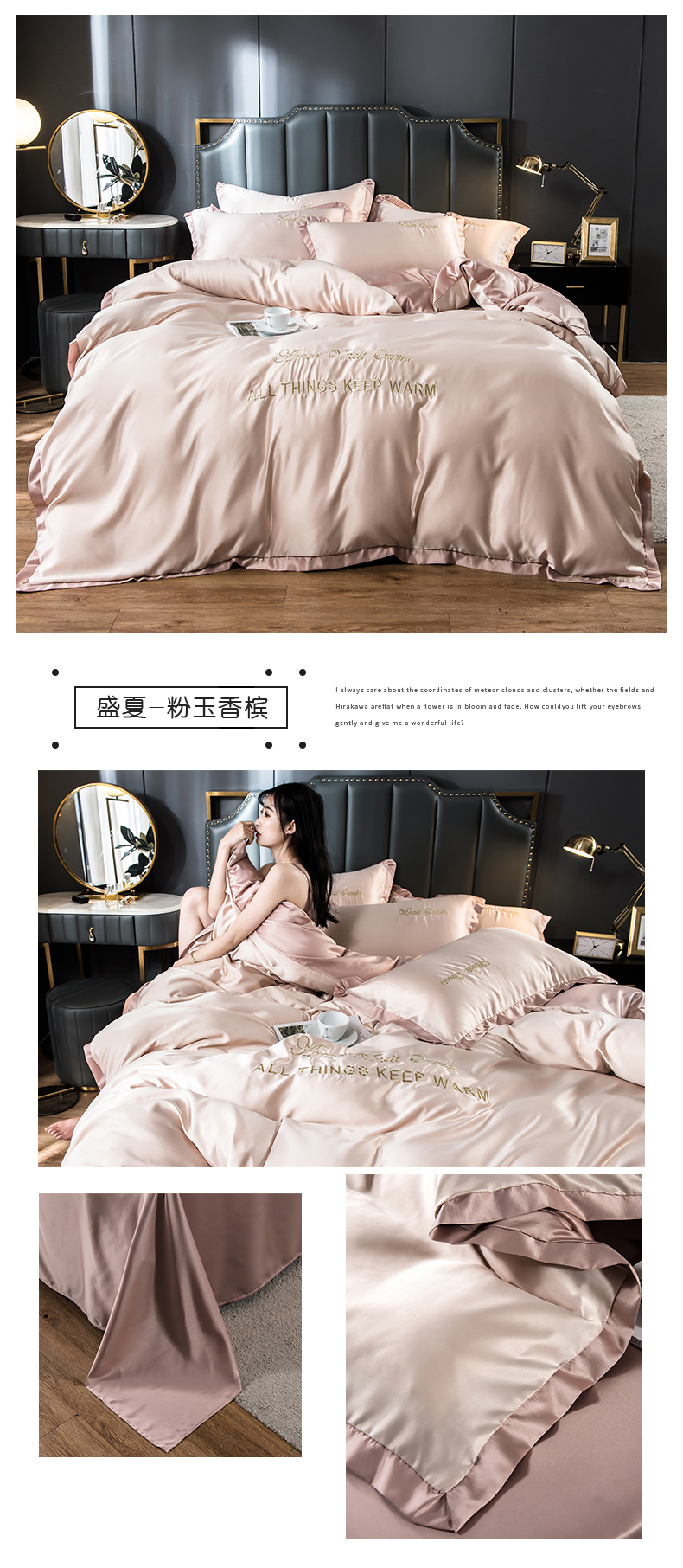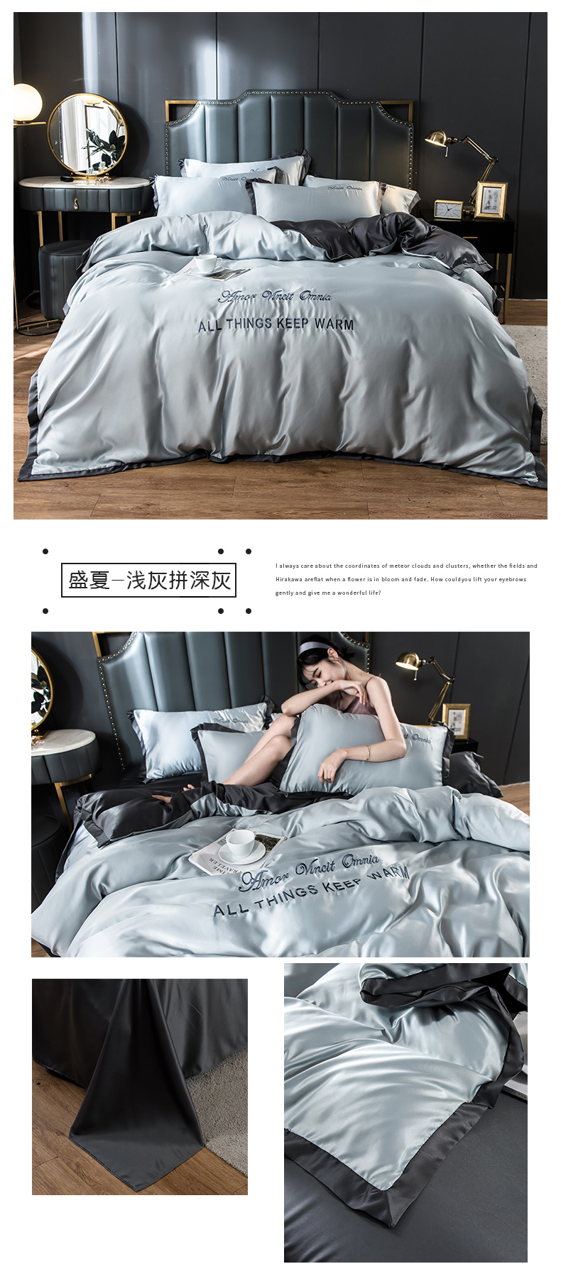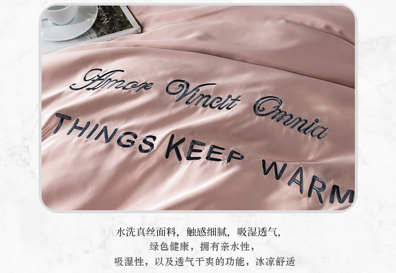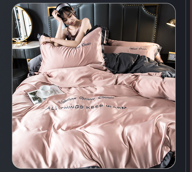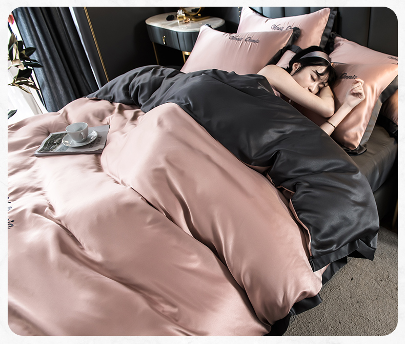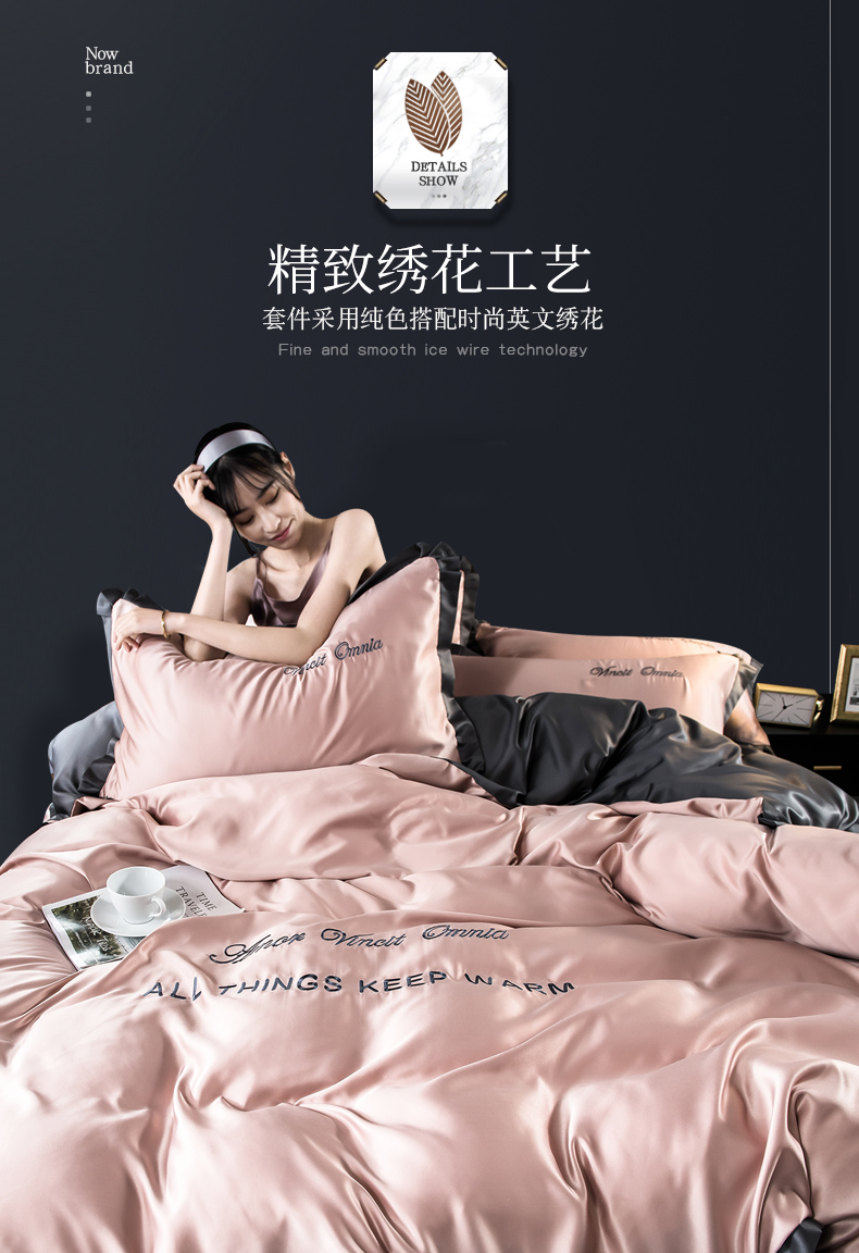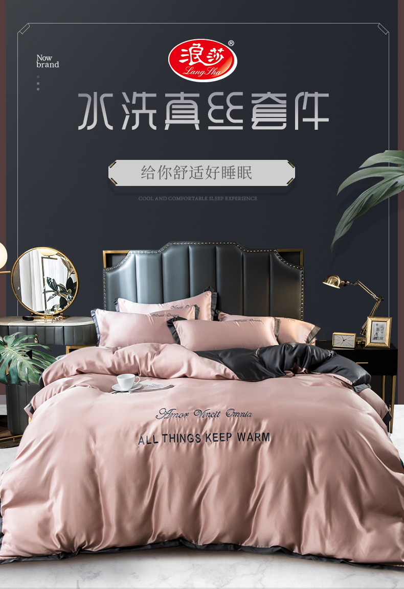 浪莎四件套水洗真絲北歐風被套床笠床單裸睡冰絲春夏秋季床上用品