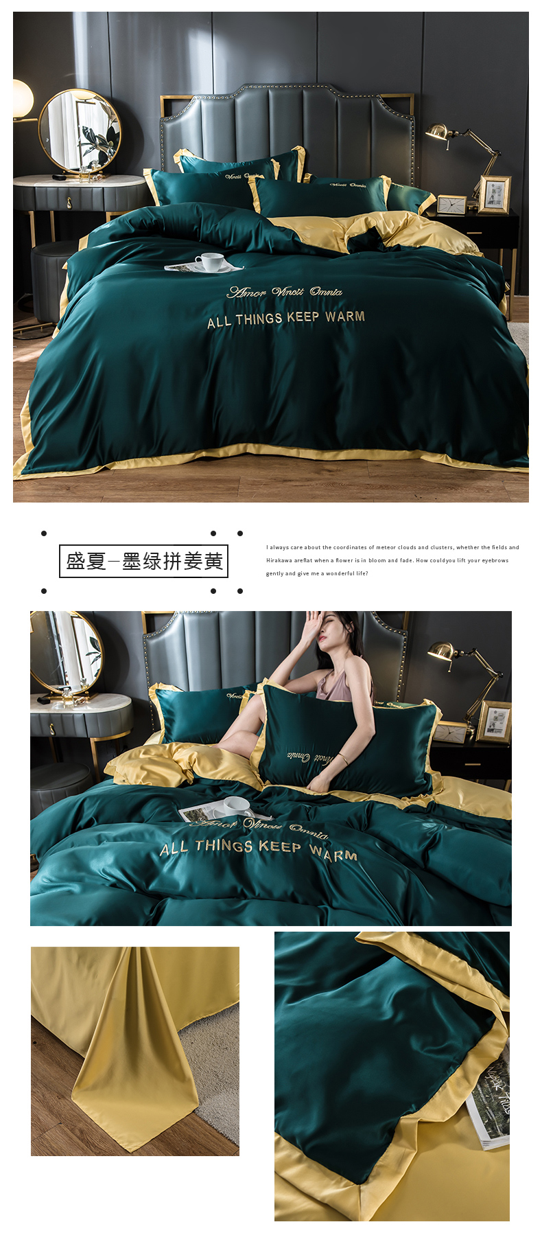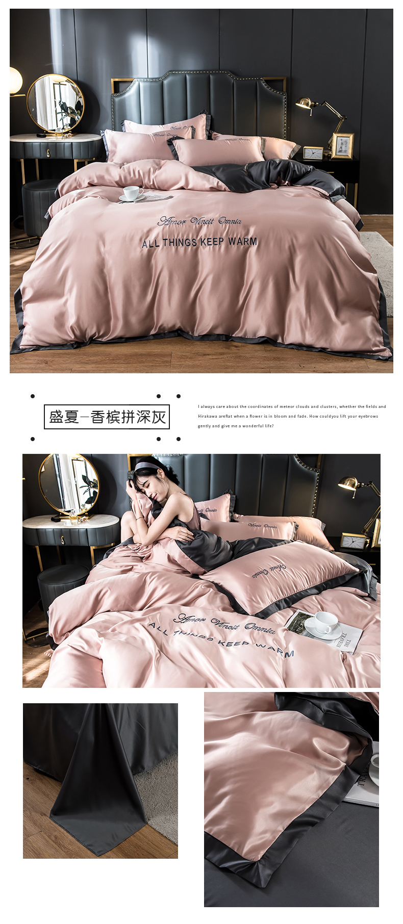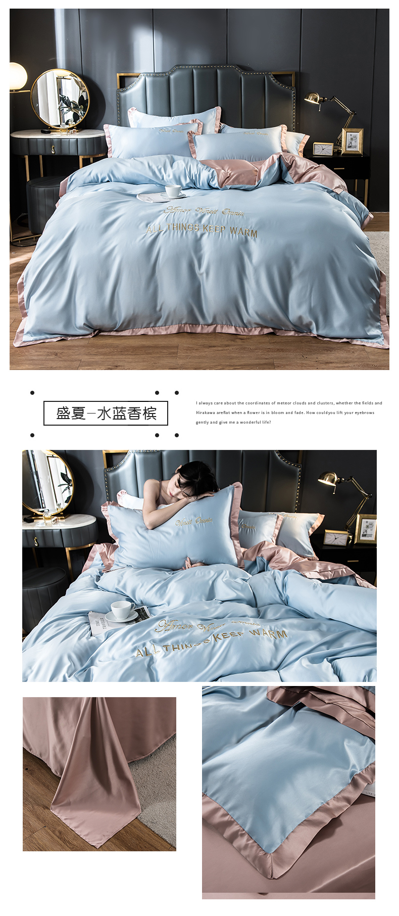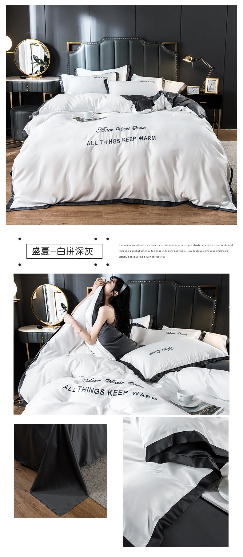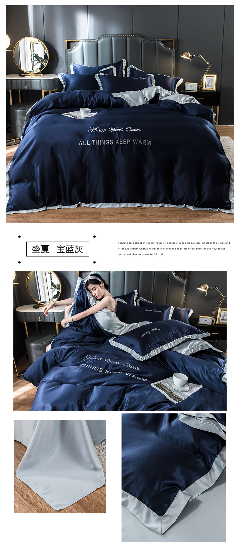 浪莎四件套水洗真絲北歐風被套床笠床單裸睡冰絲春夏秋季床上用品